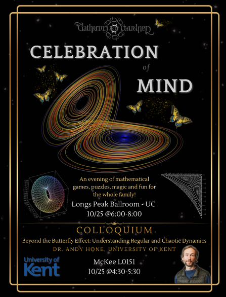 Each October, on or near the birthday Martin Gardner, the UNC Math Club and faculty host the Celebration of Mind Mathematics Festival: an evening of mathematical games, puzzles, magic, and fun for the whole family.